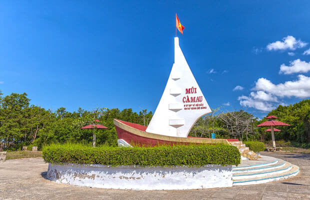 - Tiếp tục đến mũi Cà Mau chụp hình lưu niệm với áo cờ đỏ sao vàng, tham quan biểu tượng Mũi Cà Mau