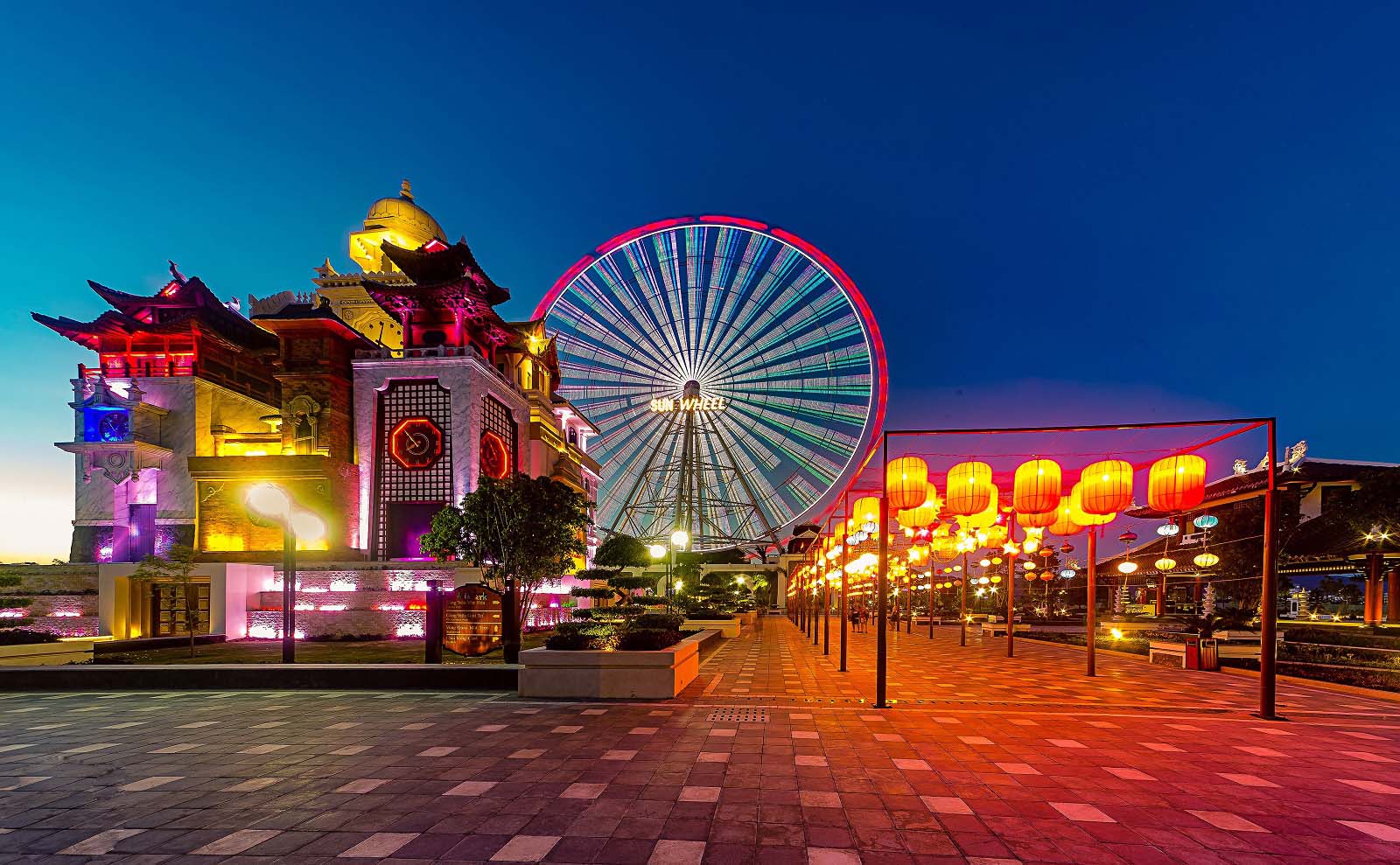 Tối: Ăn tối nhà hàng. Khám phá Đà Nẵng về đêm với các cây cầu nổi tiếng: Cầu Rồng phun lửa, Cầu treo Thuận Phước, Cầu Quay sông Hàn, Trung Tâm Thương Mại, Khu phố ẩm thực, Café – Bar – Discotheque, hoặc trải nghiệm cảm giác với Vòng quay Mặt trời Sun Wheel – Top 10 vòng quay cao nhất Thế Giới… (Vé Sun Wheel tự túc). Nghỉ đêm tại Đà Nẵng.